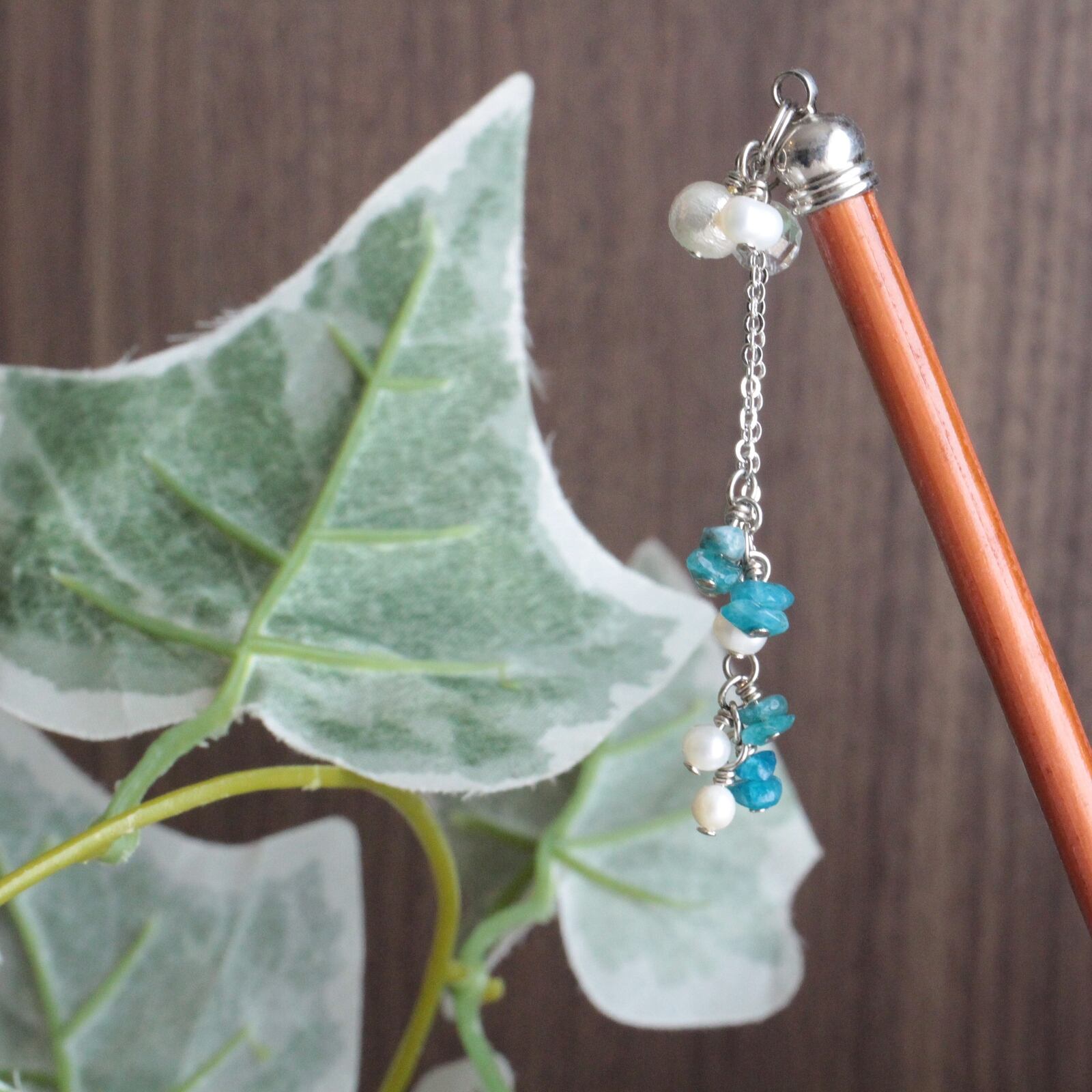 【星のカケラ】カイヤナイト×シルバー/かんざし/普段使い/竹軸/簪/人気/竹かんざし/ヘアスティック