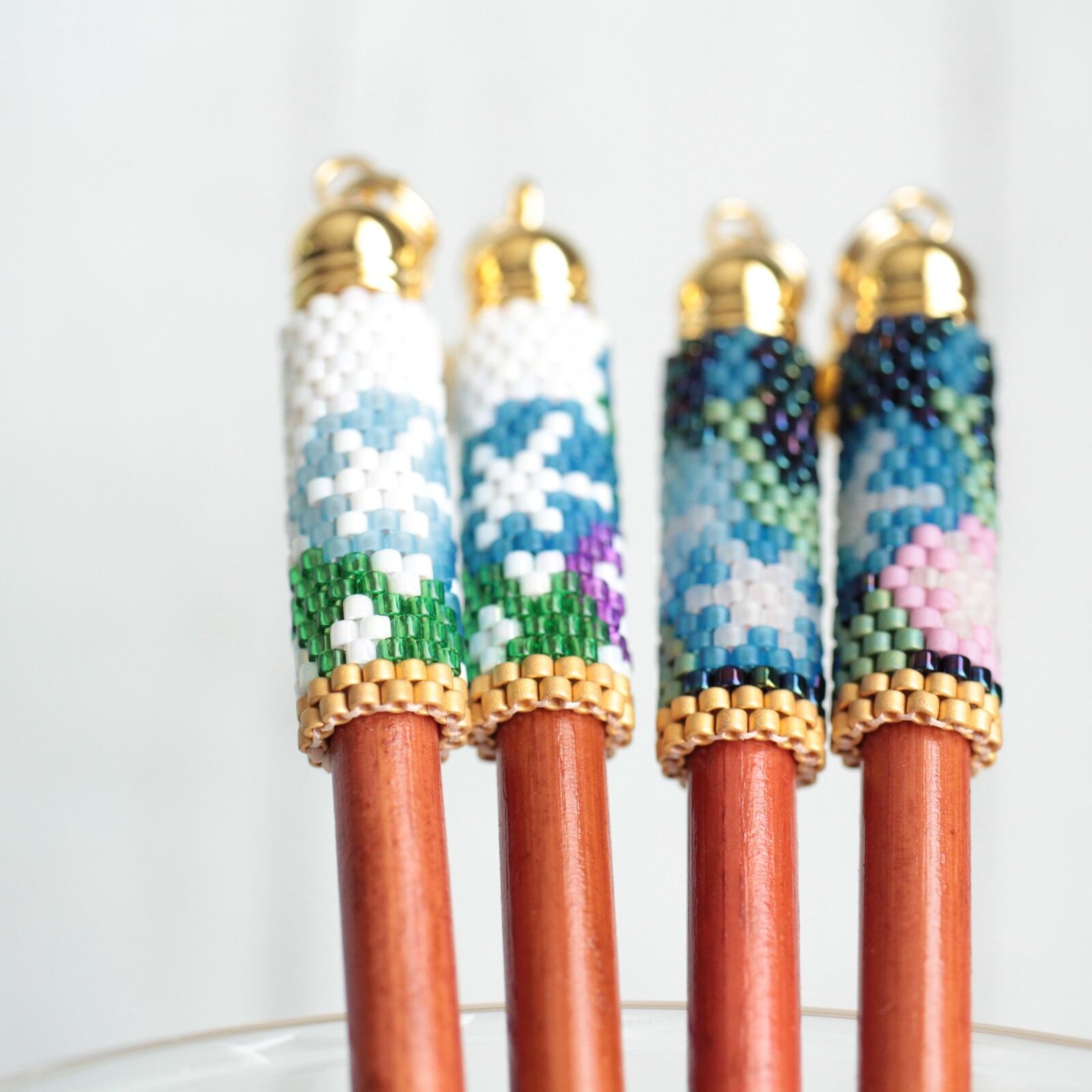 小さなデリカビーズを一粒ずつ丁寧に編み込んで朝顔をデザインしました。