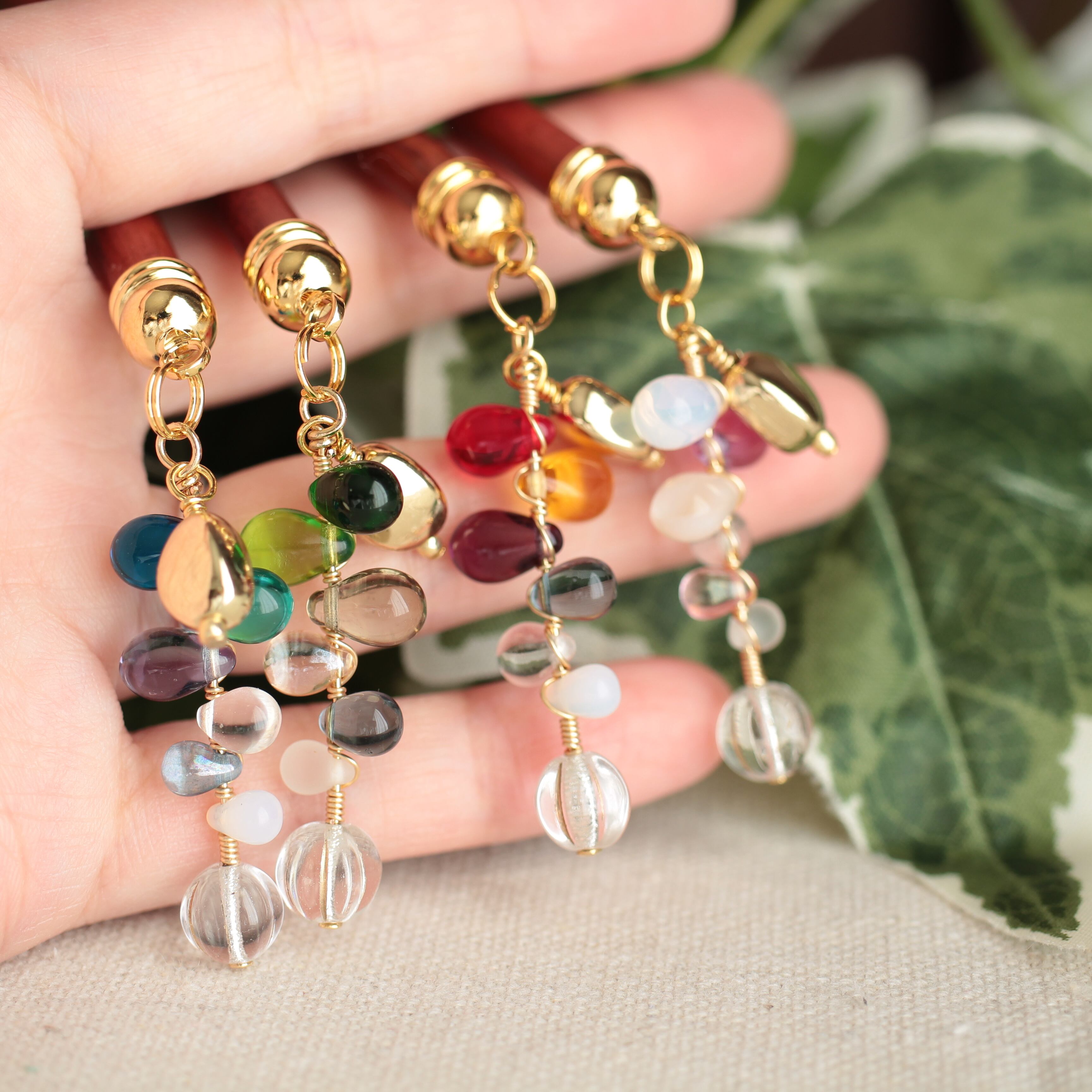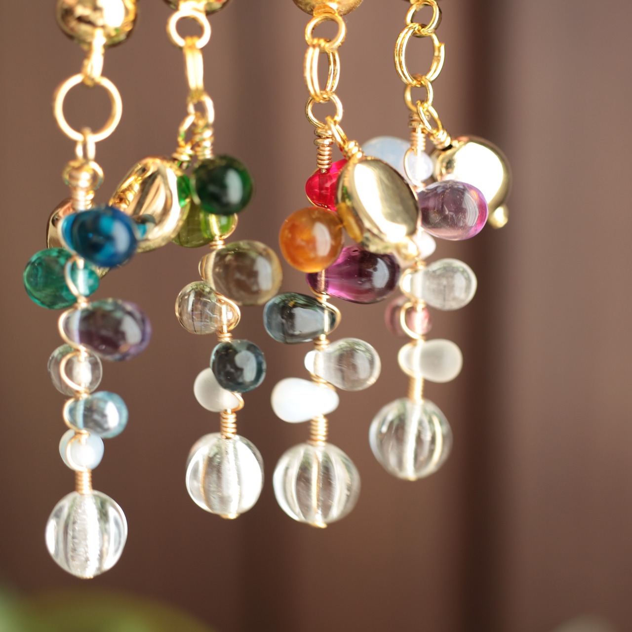 メロン玉のチェコビーズから生えたカラフルなチェコしずく。