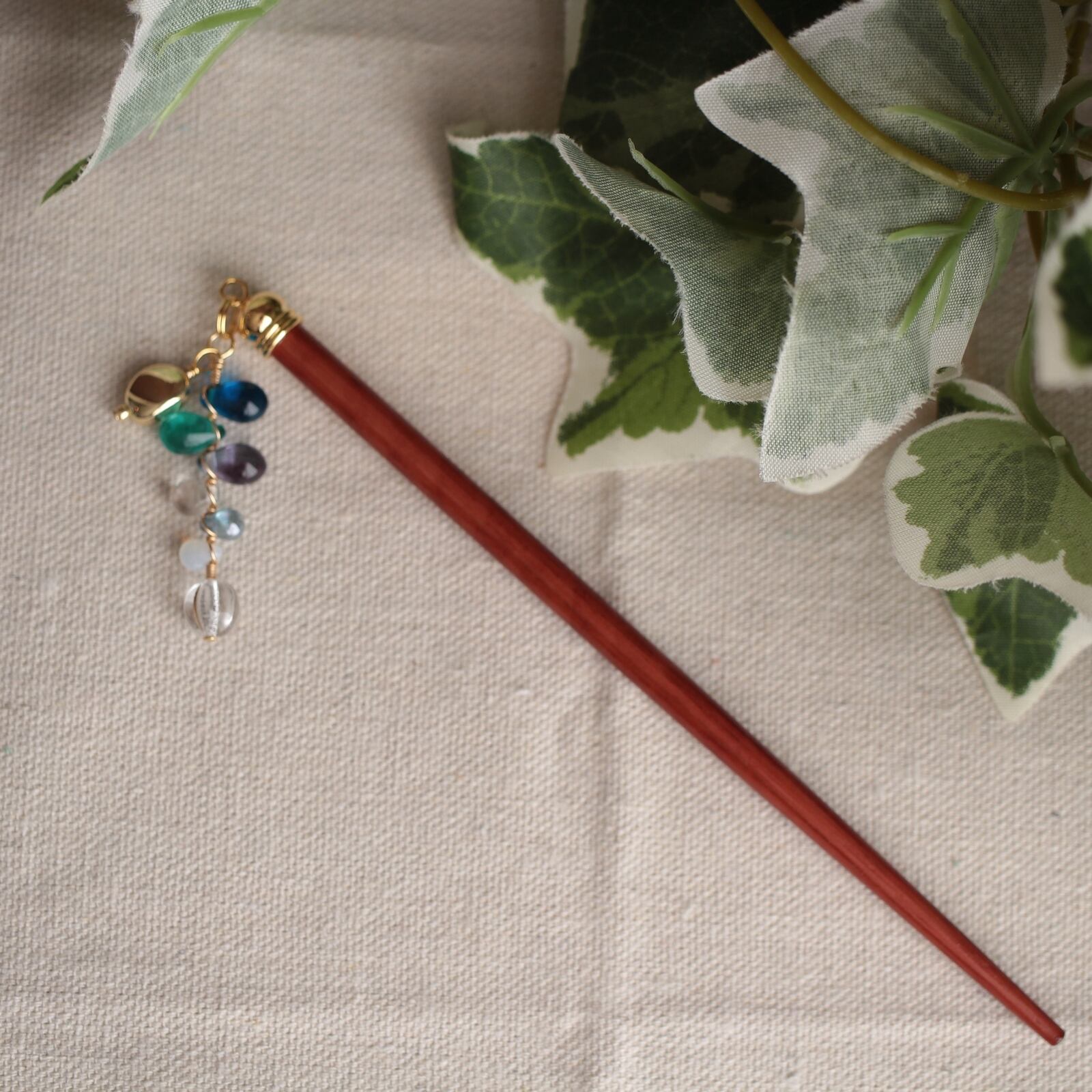 カラフルで、どちらかというとかわいらしいテイストのかんざしです。